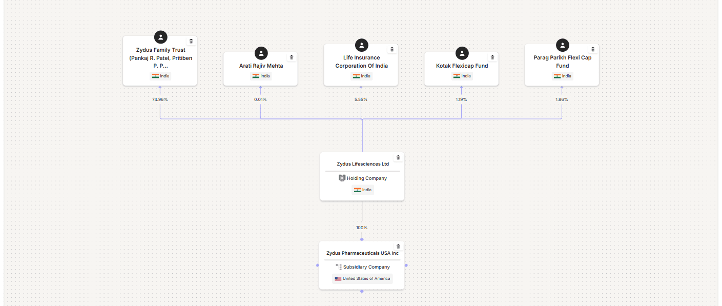 Who holds the majority stake in Zydus Lifesciences?